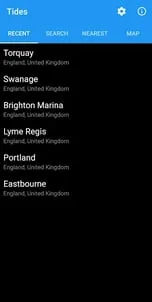 Tidal predictions for over 8500 locations showing high/low tide times, tide curve and current predicted tide height.Sea temperature (2 days) for 7000+ locations.Wave forecast (5+ days) for 5600+ locations.Storm surge forecast (2-3 days) for UK and nearby.Sun/Moon data worldwide.Covers: UK, Europe, Africa, Middle East, North/South America, Asia, Australia, New Zealand and more.Tide predictions based on data from UKHO, HOAA, NTSLF and others.Features:- Search, nearest and recent locations.- Map- Tidal prediction charts.- Current predicted tide height.- Tide predictions from 2015 to 2050 for all locations.- Works completely offline (except for maps, sea temperature, wave forecasts).- No adverts and no in-app purchases.- No personal data collected.Version 6.0- Added wave forecasts.- Added tabs for additional data.- Many minor improvements.Version 5.0- Added sea temperature.- Additional moon information.